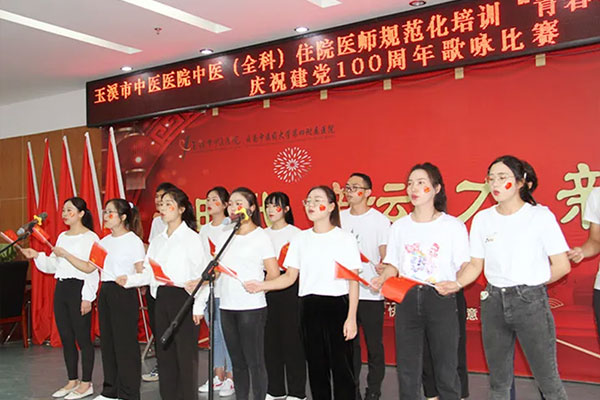 為推進(jìn)黨史學(xué)習(xí)教育,重溫黨的光輝歷程,弘揚(yáng)時(shí)代主旋律,傳承紅色革命精神,培養(yǎng)青年學(xué)生的愛國情操,堅(jiān)定信念理想、增強(qiáng)使命擔(dān)當(dāng),展現(xiàn)青年學(xué)生奮發(fā)向上、朝氣蓬勃的精神面貌,凝聚建功新時(shí)代的磅礴青春力量,5月19日,我院全體中醫(yī)(全科)住院醫(yī)師開展了“青春心向黨 奮斗新征程”慶祝建黨100周年歌詠比賽。