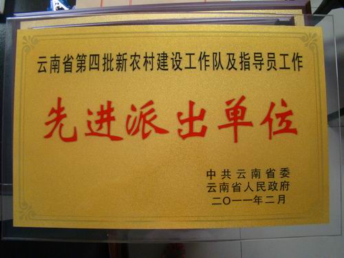 二0一一年獲云南省第四批新農(nóng)村建設(shè)工作隊(duì)及指導(dǎo)員工作先進(jìn)派出單位