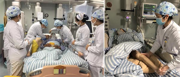 重癥醫(yī)學(xué)科護士高雪在護理危重的患者。查看病情,整理管道,翻身,看皮膚。軸線翻身,小心翼翼,盡力減輕患者的不適。危重患者的每一次翻身都是體力活,四五個姐妹齊上陣是常有的事。只要這些危重病人能一天天好起來,一切苦累都值得。