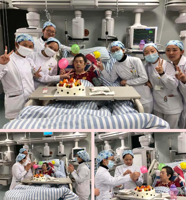 監(jiān)護病房的這位老奶奶已經(jīng)快九十歲了。姐妹們點亮蠟燭,為這位老紅軍奶奶過一個難忘的生日。