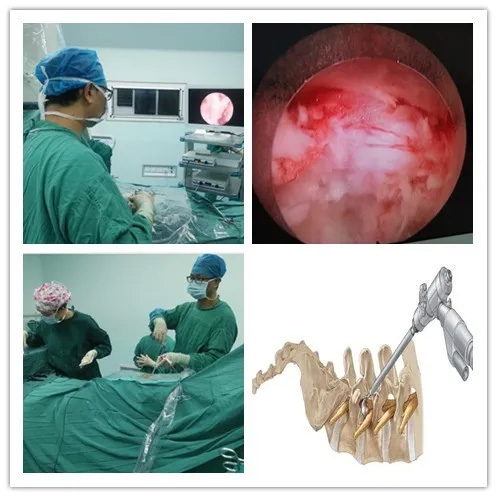 椎間孔鏡在內(nèi)窺鏡直視下可以清楚的看到突出的髓核、神經(jīng)根、硬膜囊和增生的骨組織。然后使用各類抓鉗摘除突出組織、鏡下去除骨質(zhì)、射頻電極修復(fù)破損纖維環(huán)。手術(shù)創(chuàng)傷小,皮膚切口僅7mm,出血不到20ml,術(shù)后僅縫1針,是同類手術(shù)中對病人創(chuàng)傷最小、效果最好的椎間盤突出微創(chuàng)療法,其臨床優(yōu)勢明顯。