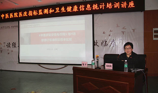 楊柏楓主任是云南省中醫(yī)病歷質量控制中心主任、云南省中醫(yī)醫(yī)院有病案統計科主任,從事病案、統計、信息管理工作三十余年,在病案管理、統計及信息管理方面具有豐富的經驗。楊主任分別就三級公立中醫(yī)醫(yī)院績效考核實踐、《中醫(yī)病證分類與代碼》等4項新修訂標準新舊版本比較、病案首頁數據質量三個方面,結合最新的要求和考核情況,理論聯系實際,深入淺出地進行了講解。