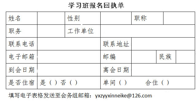 ?。ㄈ战M聯(lián)系人:景文蓉:13908897374 李紅艷:13618770221;請參會人員填報《參會回執(zhí)》于8月15日前發(fā)送會務組郵箱E-mail:yxzyyxinneike@126.com