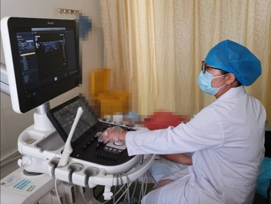 我院超聲影像學(xué)醫(yī)師白雪為患者做肌骨超聲檢查