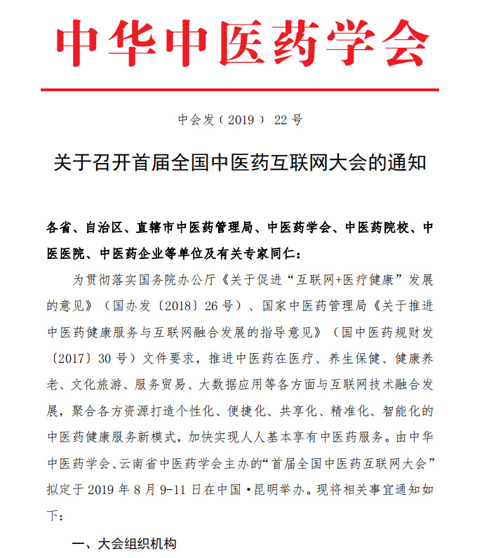 關(guān)于召開首屆全國中醫(yī)藥互聯(lián)網(wǎng)大會(huì)的通知