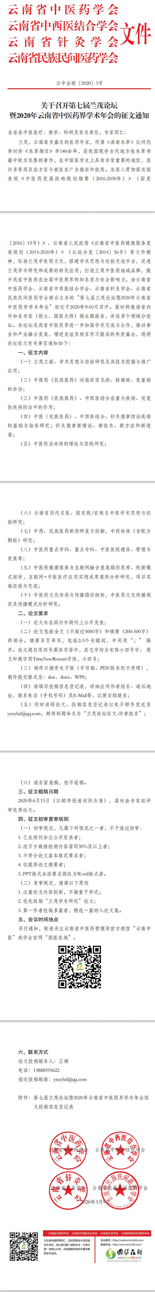 關(guān)于召開第七屆蘭茂論壇暨2020年云南省中醫(yī)藥界學(xué)術(shù)年會的征文通知