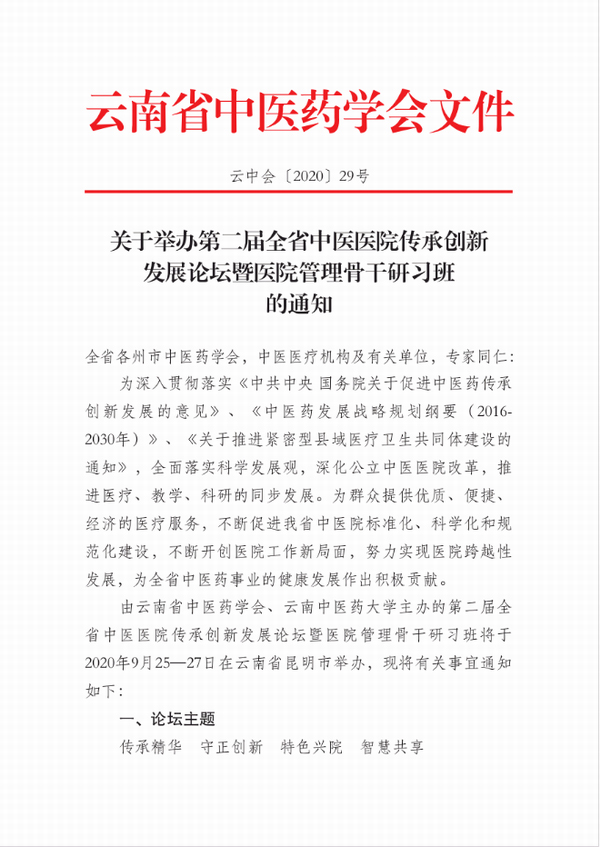 關于舉辦第二屆全省中醫(yī)醫(yī)院傳承創(chuàng)新發(fā)展論壇暨醫(yī)院管理骨干研習班的通知