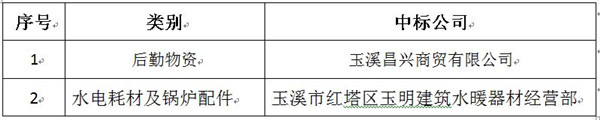 玉溪市中醫(yī)醫(yī)院2016年后勤物資、水電耗材及鍋爐配件采購中標公告