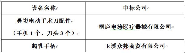 我院采用院內(nèi)競(jìng)爭(zhēng)性談判的方式對(duì)院內(nèi)小設(shè)備進(jìn)行采購(gòu), 現(xiàn)將中標(biāo)情況公布如下: