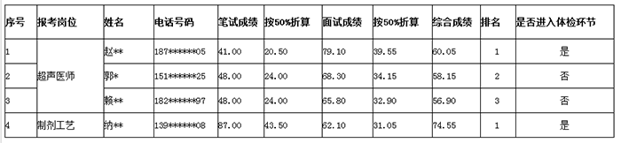 根據(jù)《玉溪市中醫(yī)醫(yī)院2018年招聘編制外合同制人員公告》和相關(guān)規(guī)定,玉溪市中醫(yī)醫(yī)院經(jīng)過報(bào)名、資格審查、筆試以及面試,確定進(jìn)入體檢人員名單如下: