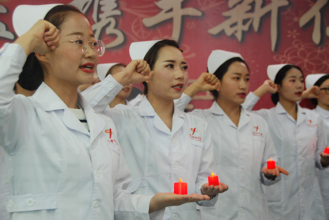 晚會舉行了莊嚴(yán)的宣誓儀式。醫(yī)院護(hù)理前輩手托著南丁格爾傳承百年的燭光,傳遞到新生一代護(hù)理工作者手中。全體護(hù)理工作者莊嚴(yán)宣誓:“我將遵守護(hù)士的職業(yè)道德規(guī)范,以真心、愛心和責(zé)任心對待每一位病人……”一句句神圣的誓詞、一聲聲真摯的話語,表達(dá)了白衣天使們志愿獻(xiàn)身護(hù)理事業(yè)的決心。