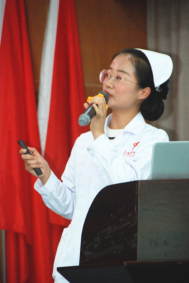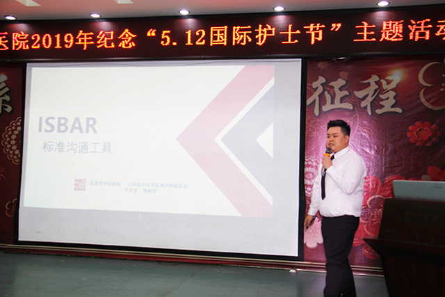 會上,在“首屆護(hù)理臨床教學(xué)授課比賽”及“2019年品管圈競賽”中獲獎的部分選手為大家進(jìn)行了匯報展示。獲“全國??破餍翟偬幚碇改献罴褜嵺`大賽”云南賽區(qū)三等獎——岳子晶展示《硬式內(nèi)鏡的預(yù)處理》;獲“首屆護(hù)理臨床教學(xué)授課比賽”一等獎人員——林峻同展示《ISBAR標(biāo)準(zhǔn)溝通工具》;獲“首屆護(hù)理臨床教學(xué)授課比賽”一等獎人員——陳娜展示《病人常見的心理問題與心理護(hù)理技巧》;獲得2019年“護(hù)理品管圈”競賽一等獎科室展示《篤行圈》;獲得2019年“護(hù)理品管圈”競賽一等獎科室展示《動動圈》。