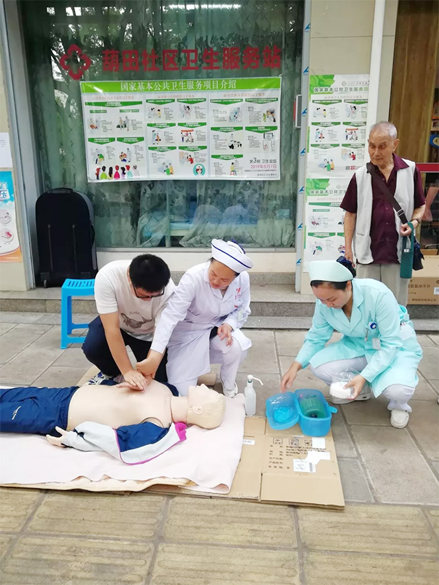 本次活動,還設立了應急救護實操點,醫(yī)護人員通過系統(tǒng)演示、詳細講解包括調整體位、開放氣道、判斷呼吸循環(huán)、人工呼吸、胸外心臟按壓等心肺復蘇法的操作要領,居民們參與熱情很高,先后有多名群眾在醫(yī)護人員的指導下練習了操作。
