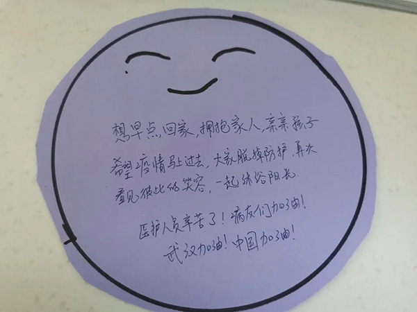 一天,同病房的兩位患者同時(shí)治愈出院,林菊花和護(hù)理組長(zhǎng)一起去送她們,但發(fā)現(xiàn)同病房的另一位年輕患者在為病友痊愈出院由衷高興的同時(shí)眼底掩飾不住的羨慕和落寞。這位年輕患者早晨還出現(xiàn)了嘔吐癥狀,神情懨懨。送走兩位出院患者后,林菊花返回病房,以閑聊的方式對(duì)那位年輕患者進(jìn)行了心理疏導(dǎo),但收效甚微,林菊花看她還是提不起精神,忽然想起醫(yī)院開(kāi)展的患者心愿墻活動(dòng),她想也許這會(huì)是一個(gè)突破口,于是她拿了一張自制的心愿紙給患者,告訴她:“可以把你的心愿或者不開(kāi)心都寫(xiě)在上面,寫(xiě)出來(lái)好的會(huì)實(shí)現(xiàn),壞的通通丟掉!”看患者的表情她好像覺(jué)得這個(gè)方法有點(diǎn)幼稚,但還是提起了筆,寫(xiě)完后自己還忍不住拍照保存,“現(xiàn)在先把你的愿望貼在心愿墻上,到你出院的那天取下來(lái)送給你留作紀(jì)念。”看到患者的笑容,林菊花這才如釋重負(fù)。