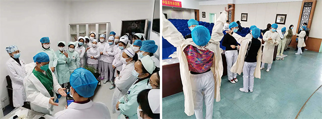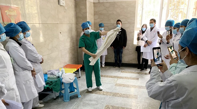 強化全院人員的防控意識,提升防控技能,院感辦在積極學(xué)習(xí)新冠肺炎防控知識的同時,針對此次疫情相關(guān)發(fā)熱門診、預(yù)檢分診、檢驗科、CT室重點科室的重點環(huán)節(jié),強化培訓(xùn),并將培訓(xùn)延伸至急救醫(yī)療組、中醫(yī)中藥專家組、留驗點支援人員、援鄂醫(yī)療隊、臨床科、功能科、保安、保潔、后勤等人員,采取集中、分科、分組、一對一等方式,深入科室手把手操作演示、現(xiàn)場督導(dǎo)現(xiàn)場整改。截至目前,共組織27場次,2200余人次的院感防控知識培訓(xùn)、考核,內(nèi)容包括新冠基礎(chǔ)知識、消毒隔離、防控流程、措施、穿脫防護用品、手衛(wèi)生、醫(yī)療廢物處置等內(nèi)容,切實提高了全院職工對“新冠”相關(guān)知識的系統(tǒng)掌握以及傳染病隔離防護技能和處置能力,強化了全院職工的醫(yī)院感染防控意識。
