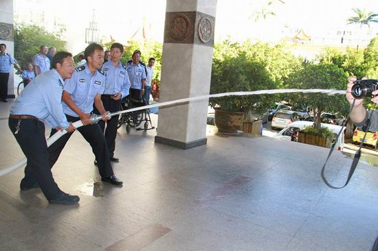 11月9日下午4點(diǎn)30分,二號(hào)樓突然發(fā)生“火災(zāi)”,病區(qū)內(nèi)“濃煙滾滾, 警鈴大作”。確認(rèn)火情后,醫(yī)院?jiǎn)?dòng)消防應(yīng)急預(yù)案,接到通知的保衛(wèi)科人員分組開始進(jìn)行滅火和疏散工作,手持滅火器開始撲救火災(zāi);同時(shí)對(duì)其他人員進(jìn)行疏散,向安全區(qū)域有序撤離。用專業(yè)設(shè)備迅速展開援救被困人員和滅火的行動(dòng),4點(diǎn)34分,火點(diǎn)被撲滅,人員全部疏散到了安全地點(diǎn)。疏散、滅火演習(xí)結(jié)束。