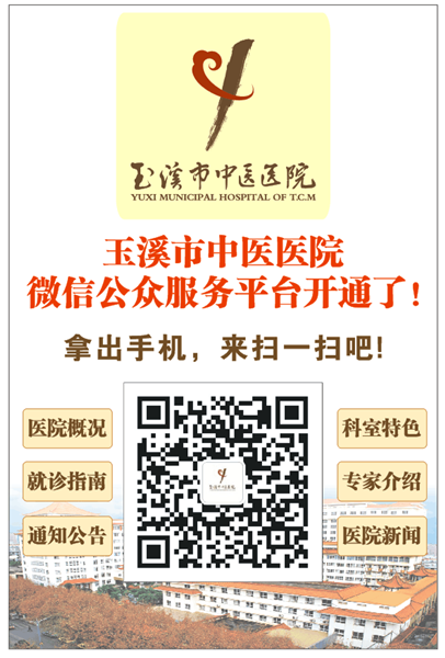市民可通過兩種方式關注我院官方微信公眾號。一是打開微信通訊錄,點擊公眾號后搜索“玉溪市中醫(yī)醫(yī)院”公眾號進行關注。二是直接使用微信掃一掃功能,掃描上方二維碼關注。