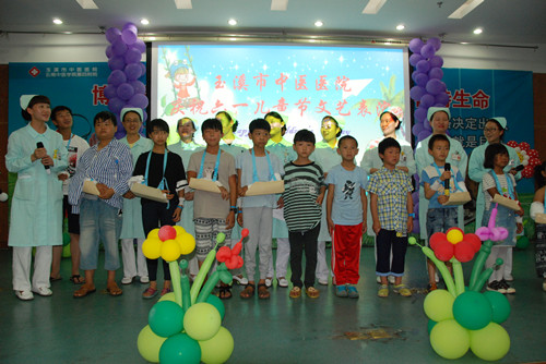 晚上,這20多名小患者還受邀參加了醫(yī)院舉行的“六一”兒童節(jié)文藝表演晚會?;顒蝇F(xiàn)場,患兒露出天使般的微笑。醫(yī)護人員與小患兒共同觀看了文藝節(jié)目表演,其中最引人注目的節(jié)目是10多名小兒患者和護士姐姐共同表演的合唱《歌聲與微笑》。此時,小兒患者的臉上不再有傷痛的表情,歡快與充景的歌聲從他們心里發(fā)出,會場上響起最熱烈的掌聲。