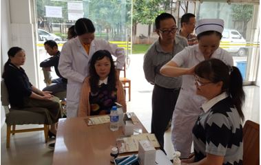 此次義診活動(dòng)由紀(jì)委李文平書記帶隊(duì),選派醫(yī)務(wù)科、心病科、腦病科、糖尿病科、針灸推拿Ⅰ科、治未病科、外Ⅱ科、皮膚科、功能科、檢驗(yàn)科等醫(yī)務(wù)人員組成了1支15人義診醫(yī)療隊(duì)到玉溪市工業(yè)財(cái)貿(mào)學(xué)校開展以“服務(wù)教師,關(guān)愛健康”為主題的義診咨詢活動(dòng)。義診由各科室分區(qū)域進(jìn)行,在義診現(xiàn)場,前來咨詢的絡(luò)繹不絕,有教師、員工,還有學(xué)校員工家屬。醫(yī)務(wù)人員認(rèn)真仔細(xì)的為他們診斷病情,講解衛(wèi)生保健、安全飲食、合理用藥等衛(wèi)生常識(shí);免費(fèi)測量血壓、血糖、血型,免費(fèi)做心電圖檢查,健康咨詢、發(fā)放健康宣教資料等,工作有條不紊的進(jìn)行著。義診活動(dòng)充分發(fā)揮玉溪市中醫(yī)醫(yī)院的中醫(yī)診療特色,免費(fèi)為辛勤教書育人的教師們做具有中醫(yī)特色的健康檢測項(xiàng)目:經(jīng)絡(luò)檢測,就教師們在中醫(yī)養(yǎng)生、保健治療等方面問題進(jìn)行答疑解惑,并在現(xiàn)場為教師們免費(fèi)做針灸、推拿、耳穴壓豆治療等治療。