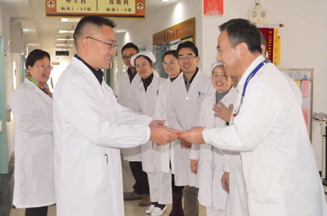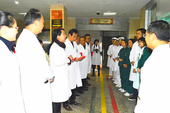 1月26日,臘月二十九,我院領(lǐng)導(dǎo)班子看望慰問醫(yī)務(wù)人員,并向全院職工拜年。