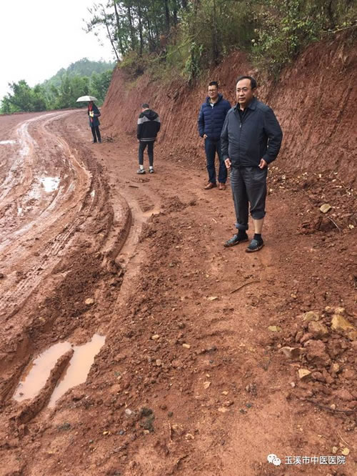 (圖注:迎著蒙蒙細(xì)雨,踏著泥濘山路,工作組步行深入農(nóng)戶(hù)家中)