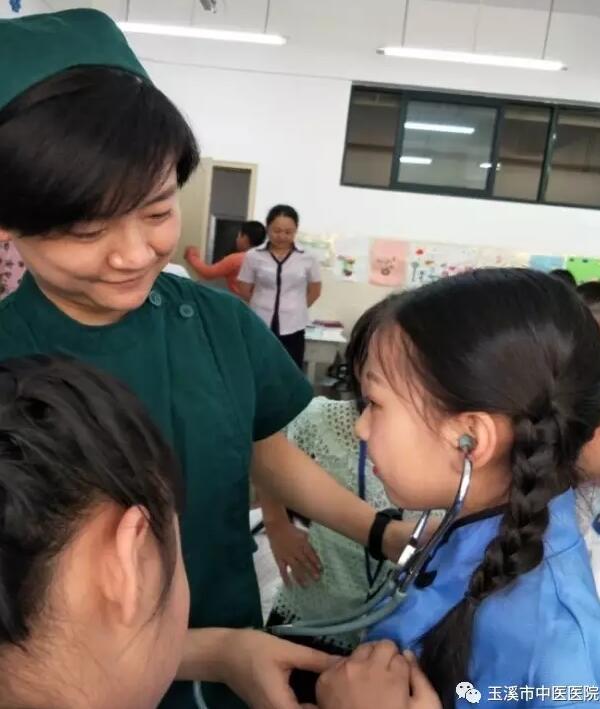 醫(yī)護人員教孩子們聽心音