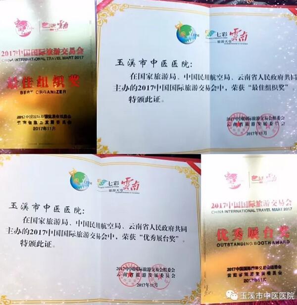 在本次旅交會(huì)中,玉溪市中醫(yī)醫(yī)院榮獲最佳組織獎(jiǎng)、優(yōu)秀展臺(tái)獎(jiǎng)兩項(xiàng)殊榮,這將激勵(lì)我院不斷努力、開拓創(chuàng)新,為玉溪中醫(yī)文化傳承發(fā)揚(yáng),走向國(guó)際大舞臺(tái)奠定堅(jiān)實(shí)基礎(chǔ)。