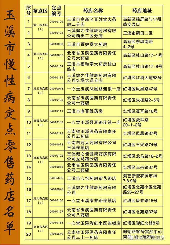 玉溪市慢性病定點零售藥店名單