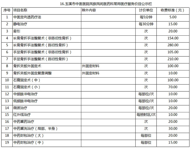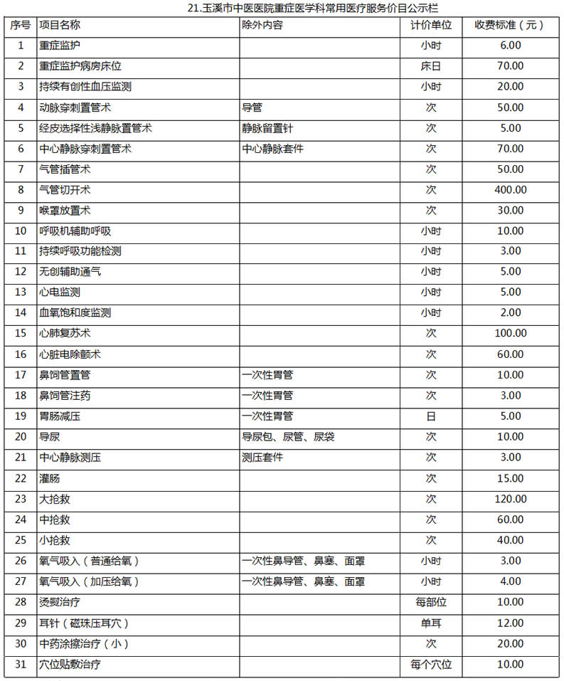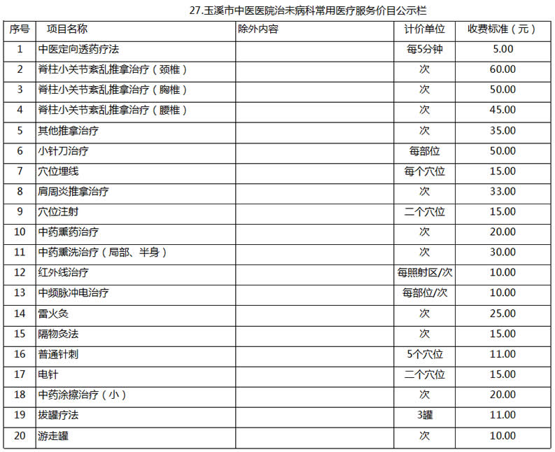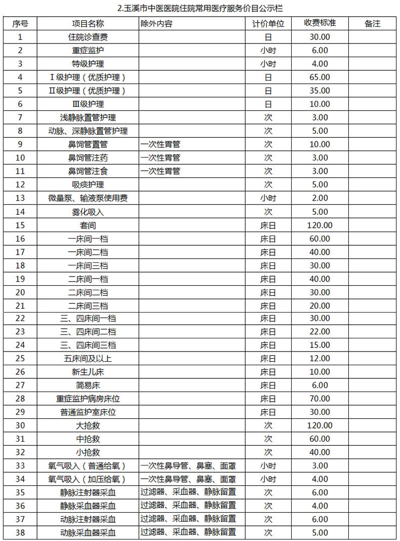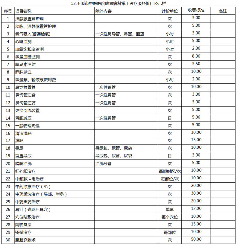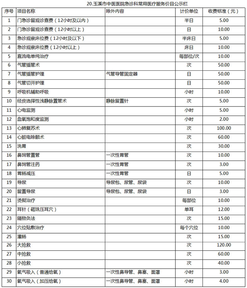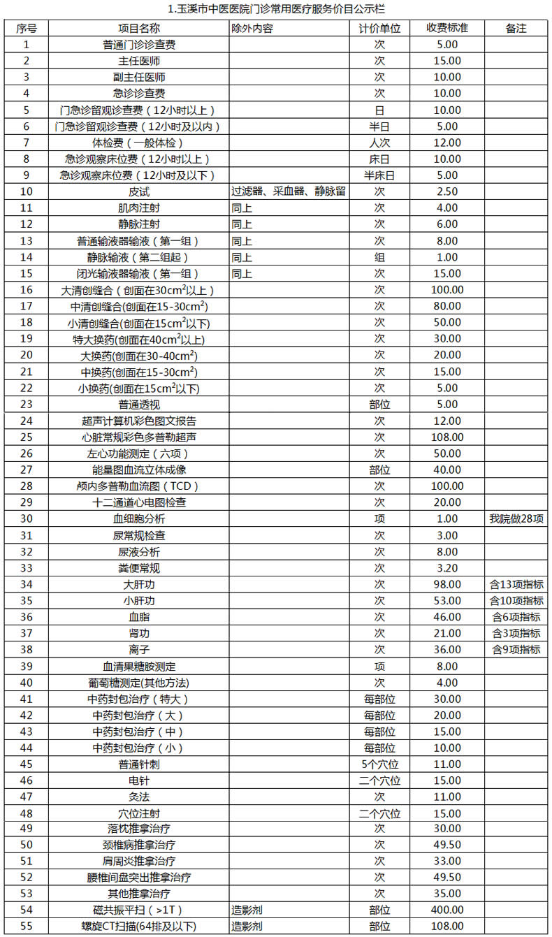 玉溪市中醫(yī)醫(yī)院常用醫(yī)療服務價目公示