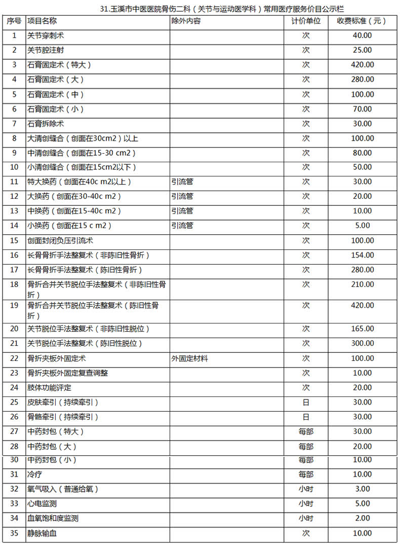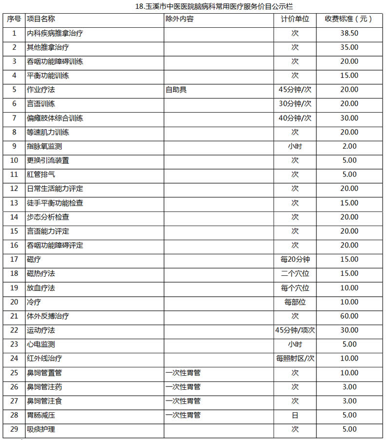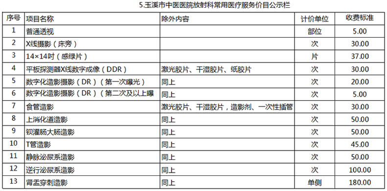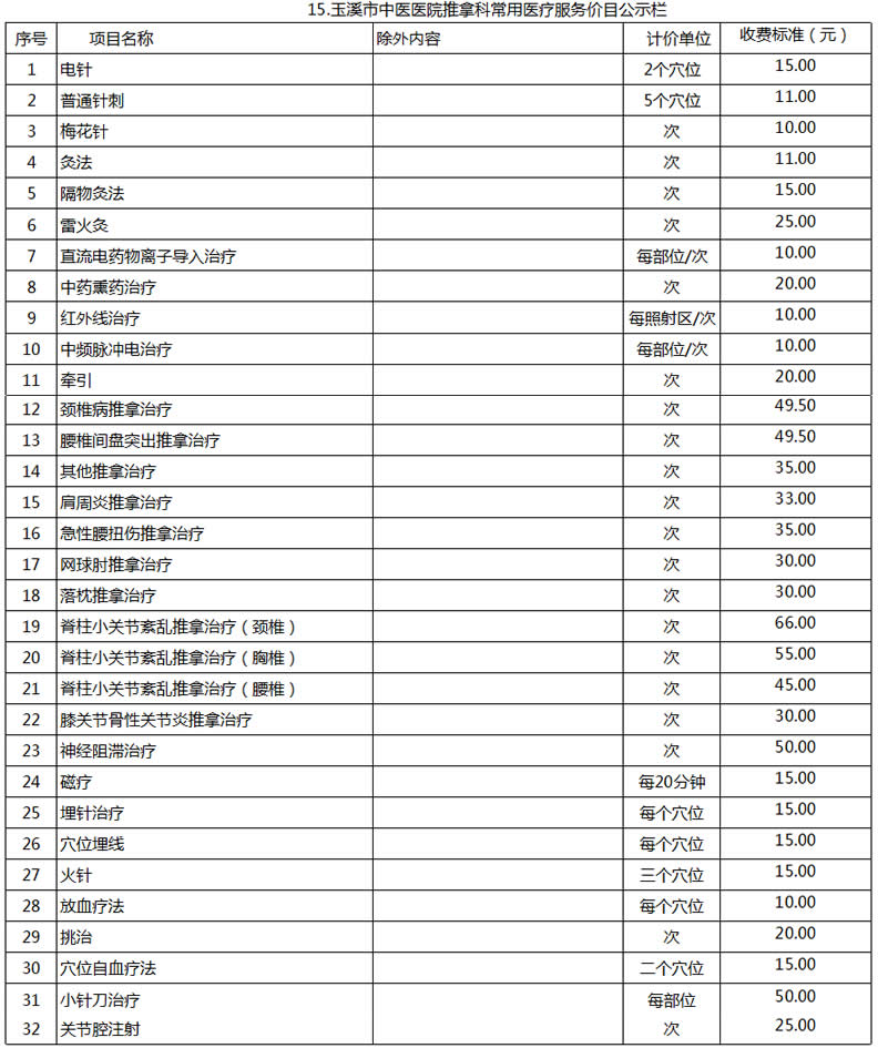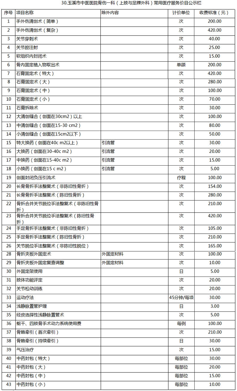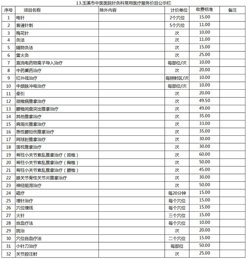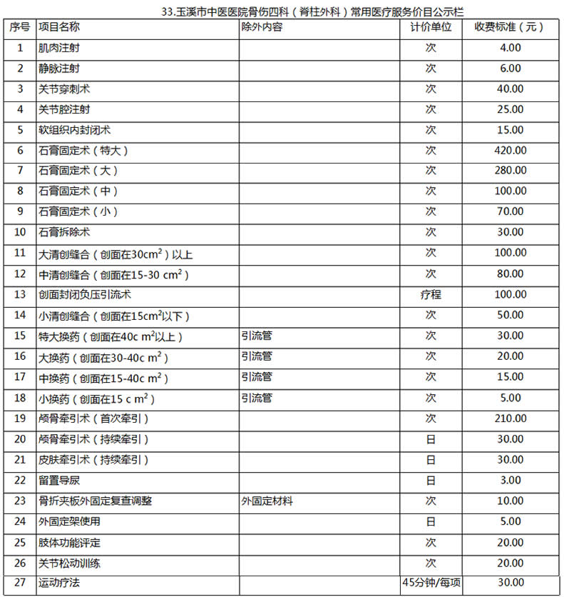 玉溪市中醫(yī)醫(yī)院常用醫(yī)療服務價目公示