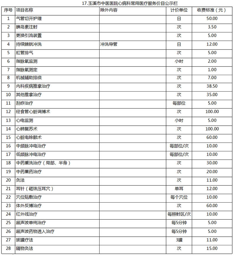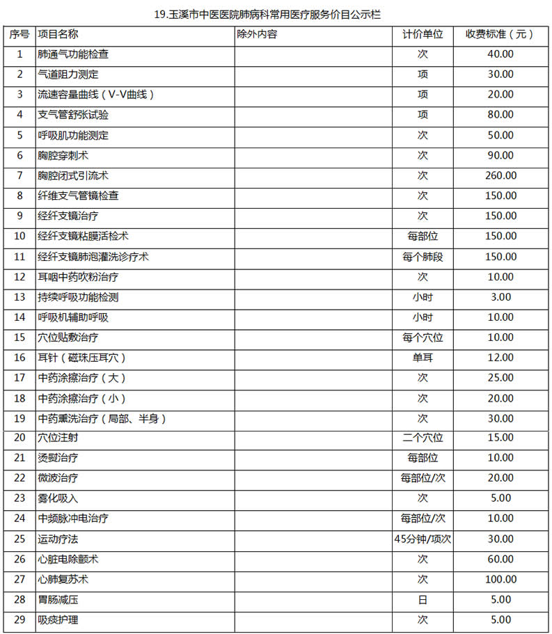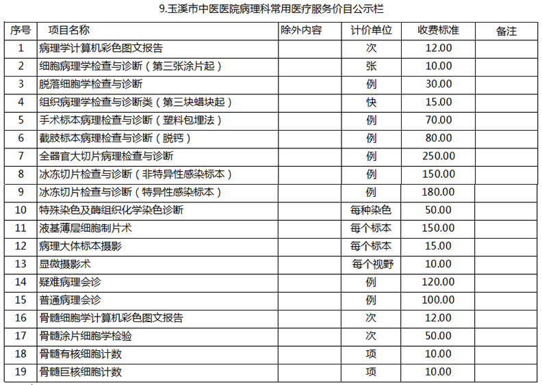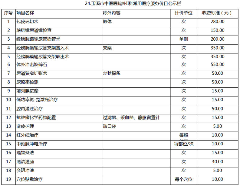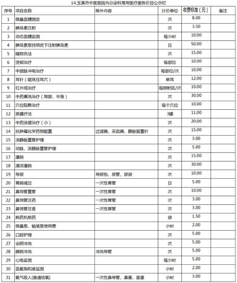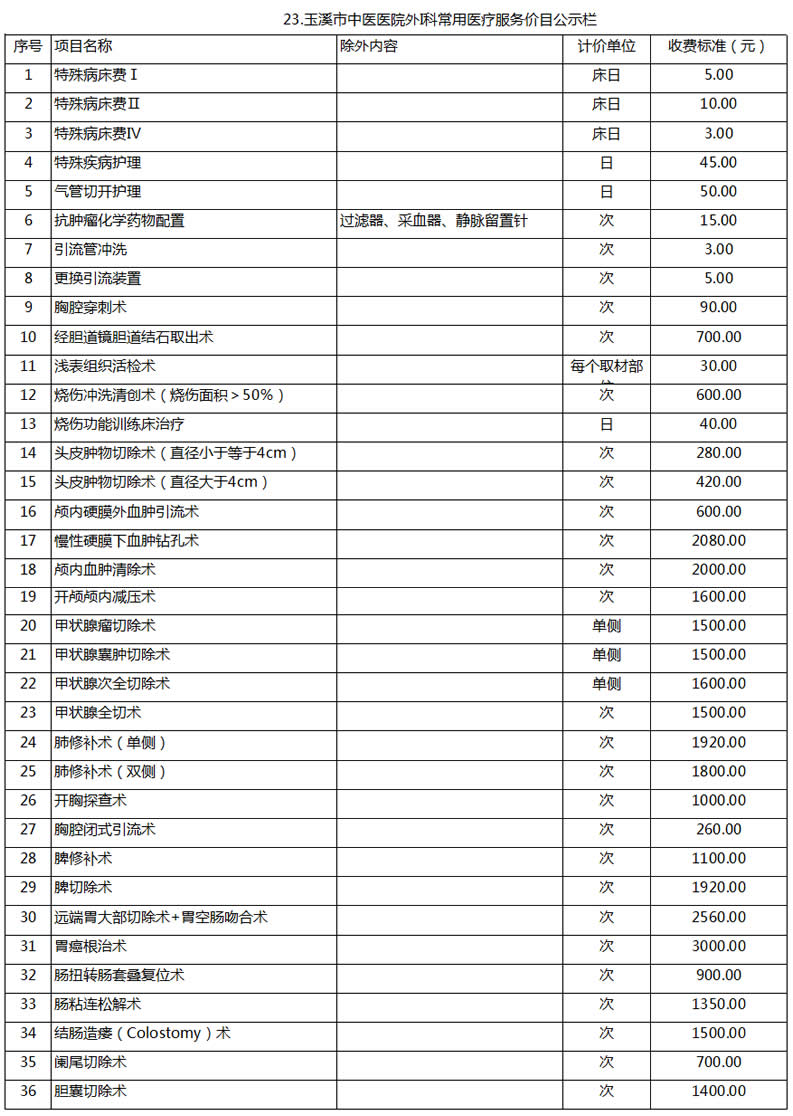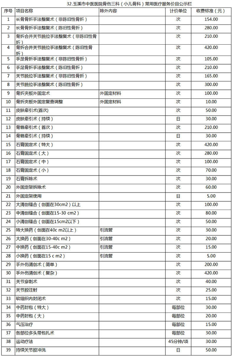 玉溪市中醫(yī)醫(yī)院常用醫(yī)療服務價目公示