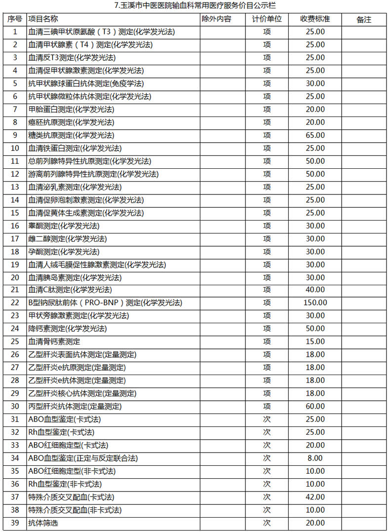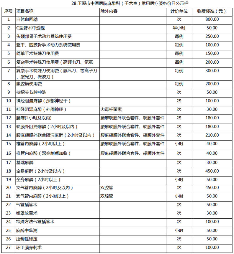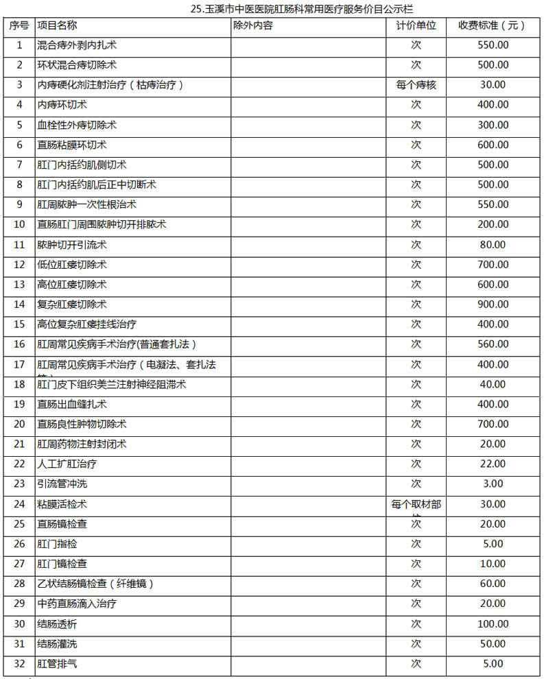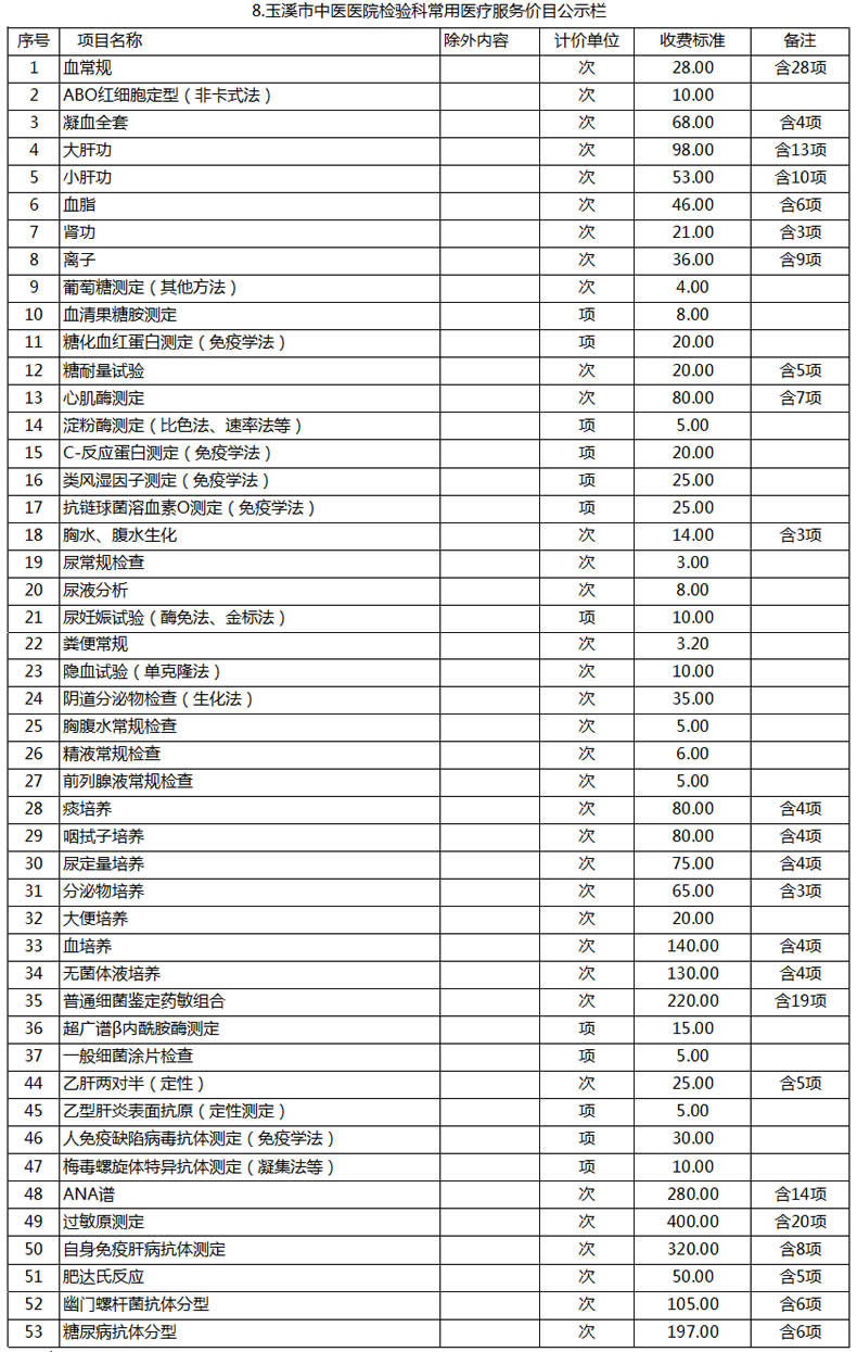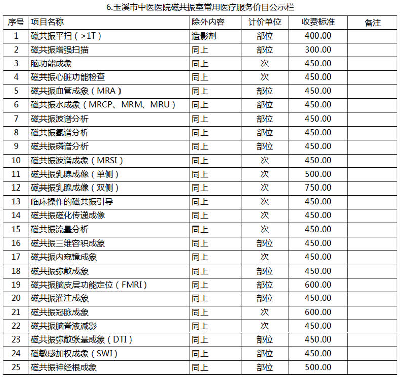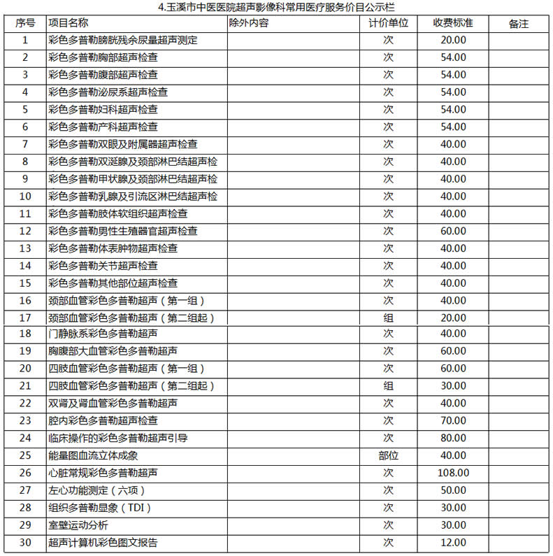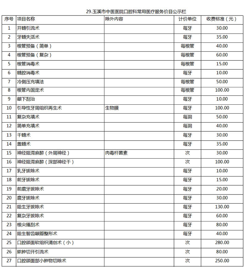 玉溪市中醫(yī)醫(yī)院常用醫(yī)療服務價目公示