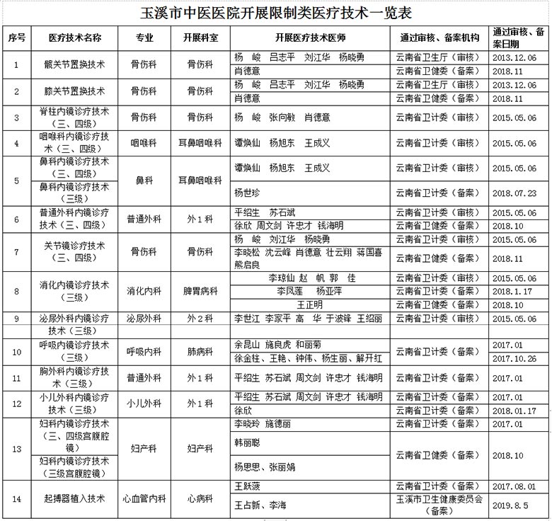 玉溪市中醫(yī)醫(yī)院開(kāi)展限制類(lèi)醫(yī)療技術(shù)一覽表