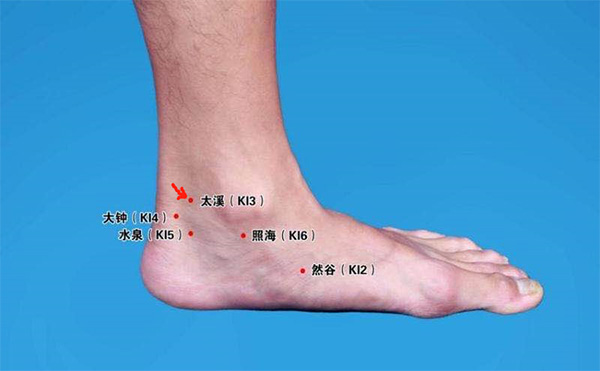 《難經(jīng).六十六難》五臟六腑之有病者,取其原也,故選擇足少陰腎經(jīng)的原穴“太溪”,順時艾灸,激發(fā)經(jīng)氣,暢通經(jīng)絡(luò),滋腎陰,補腎氣,固先天之本。